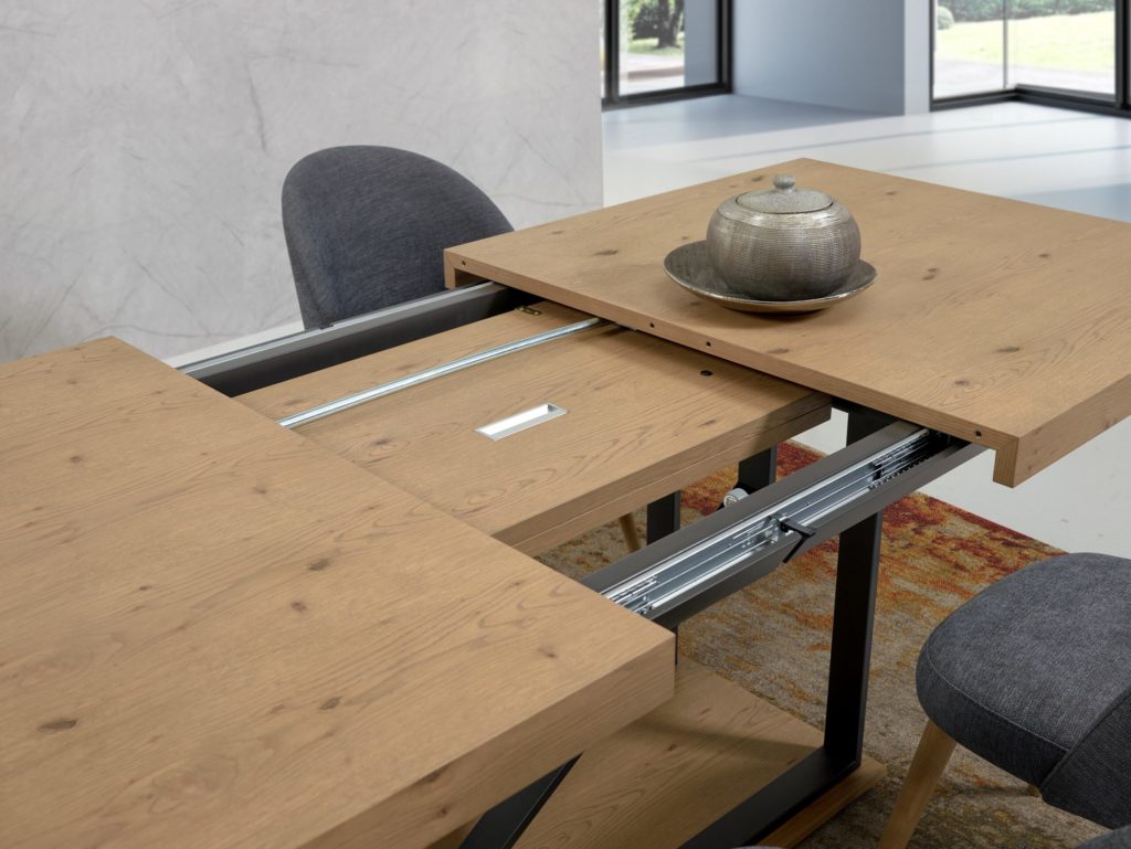 Extendable table top: An extendable table top allows you to adjust the size of the table as needed. It can be extended to accommodate more people during family meals or gatherings with friends. When not in use, it can be folded down to save space.