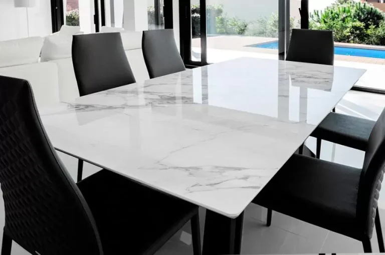 Marble Top Kitchen Tables: Marble is a classic and sophisticated material that has become popular for kitchen table tops. White or light colored marble offers an elegant and timeless look, while marble with more pronounced veins brings a touch of drama and personality to the kitchen.