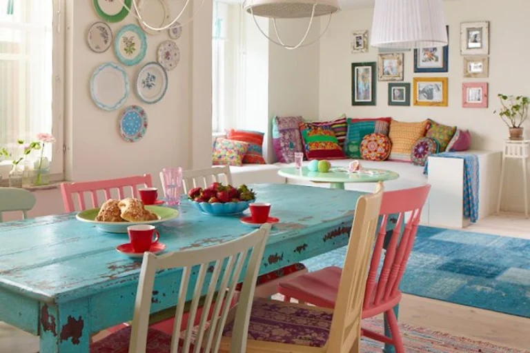 Colorful kitchen tables: While kitchen tables in neutral tones are still popular, colorful options are gaining prominence. Tables with vibrant tones, such as blue, green, yellow or even pastel tones, add personality and liveliness to the kitchen, making it more cheerful and inviting.